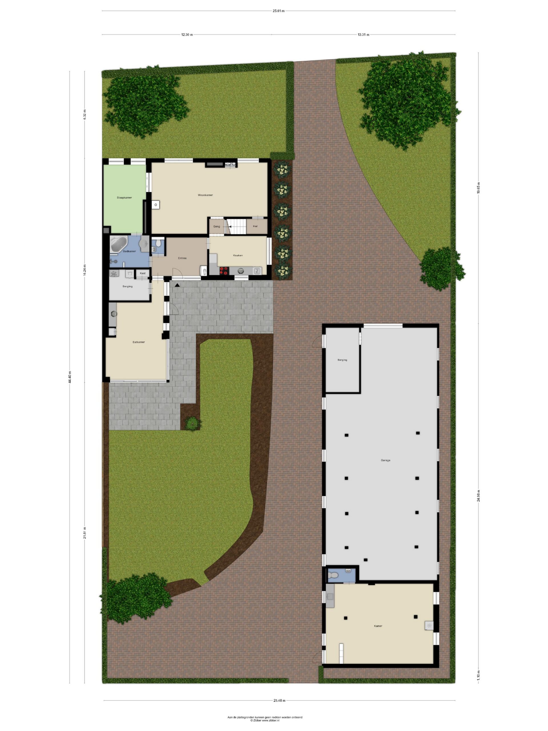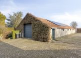 De tuin is grotendeels ingericht met een groot gazon en een terras aan het huis. Links van de woning ligt een brede oprit met toegang tot de grote vrijstaande schuur. Het voorste deel van de schuur is ingericht als stallings-/bergruimte, maar kan ook goed dienst doen als klus-/hobbyruimte. Er is elektra aanwezig in de schuur. Het achterste deel van de schuur is als ontspanningsruimte ingericht. Dit is bijvoorbeeld een mooie biljartruimte dan wel chill-ruimte voor kinderen. In deze ruimte is een eenvoudig keukenblok en toilet aanwezig.