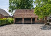 Het bijgebouw is in 2013 opnieuw opgetrokken, geheel geïsoleerd en multifunctioneel. De linkerhelft bestaat uit een dubbele garage en de rechterhelft is ingericht als tuinkamer/gastenverblijf. Dit biedt volop mogelijkheden voor stalling, hobby, een praktijk aan huis, B&B of wellicht mantelzorg. Voor het bijgebouw is er een ruime inrit waar meerdere auto’s geparkeerd kunnen worden op eigen terrein. Het perceel is omgeven door veel groen dus vrijheid gegarandeerd!
