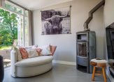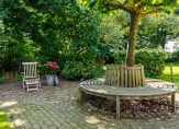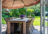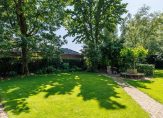 De prachtige tuin straalt rust en ruimte uit, omgeven door mooie bomen en landelijk groen. Er zijn diverse terrassen aangelegd zodat u kunt genieten van een plek in de zon of de schaduw. Het zonneterras direct grenzend aan de tuinkamer van het bijgebouw is ideaal om hier met een groter gezelschap te vertoeven. Deze tuinkamer met openslaande deuren is ook mooi afgewerkt en hier treft u een keukenblok met afvoer en water. Er is een vaste trap naar een leuke zolderkamer. De ruimte is dan ook zeer sfeervol en ideaal als hobbyruimte, chillruimte voor opgroeiende kinderen of praktijkruimte. Opties voor mantelzorg of B&B zijn ook denkbaar. En behalve deze tuinkamer is tweederde deel van het bijgebouw thans in gebruik als dubbele garage/stallingsruimte. Ook de buitenzijde van dit in 2013 vernieuwde bijgebouw heeft een prachtige uitstraling.