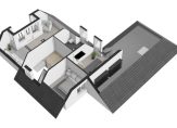 U komt binnen in een ruime hal met vide wat meteen een ruimtelijk effect geeft. Hier treft u de meterkast en de trapopgang naar boven met daaronder een praktische kelderkast. Vanuit de hal is er toegang naar de keuken en de slaapkamer op de begane grond. De slaapkamer is ca. 14 m² groot en heeft aansluitend ook toegang tot een badkamer op de begane grond voorzien van douche en wastafel. Deze badkamer heeft aan de andere zijde toegang tot de bijkeuken.