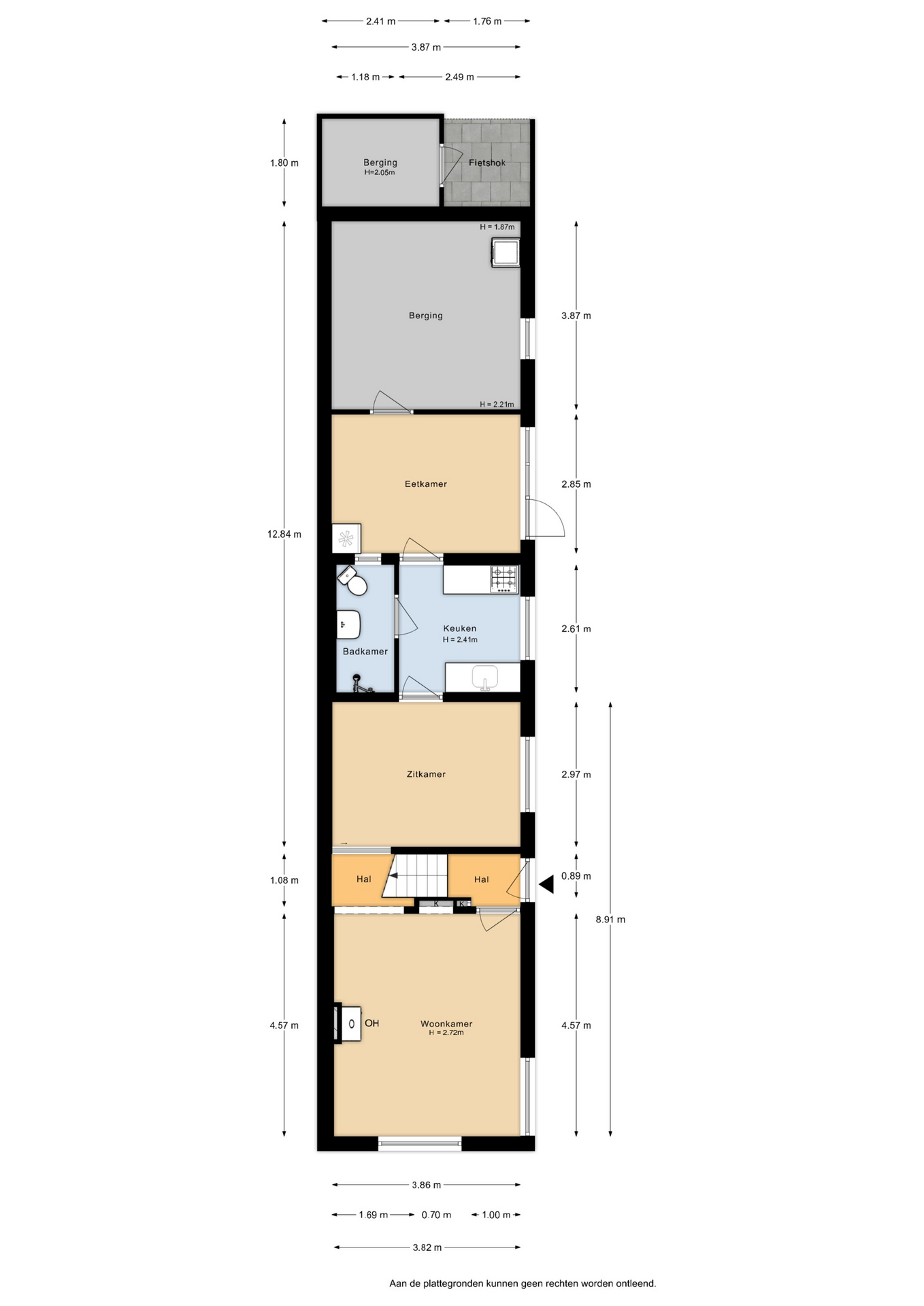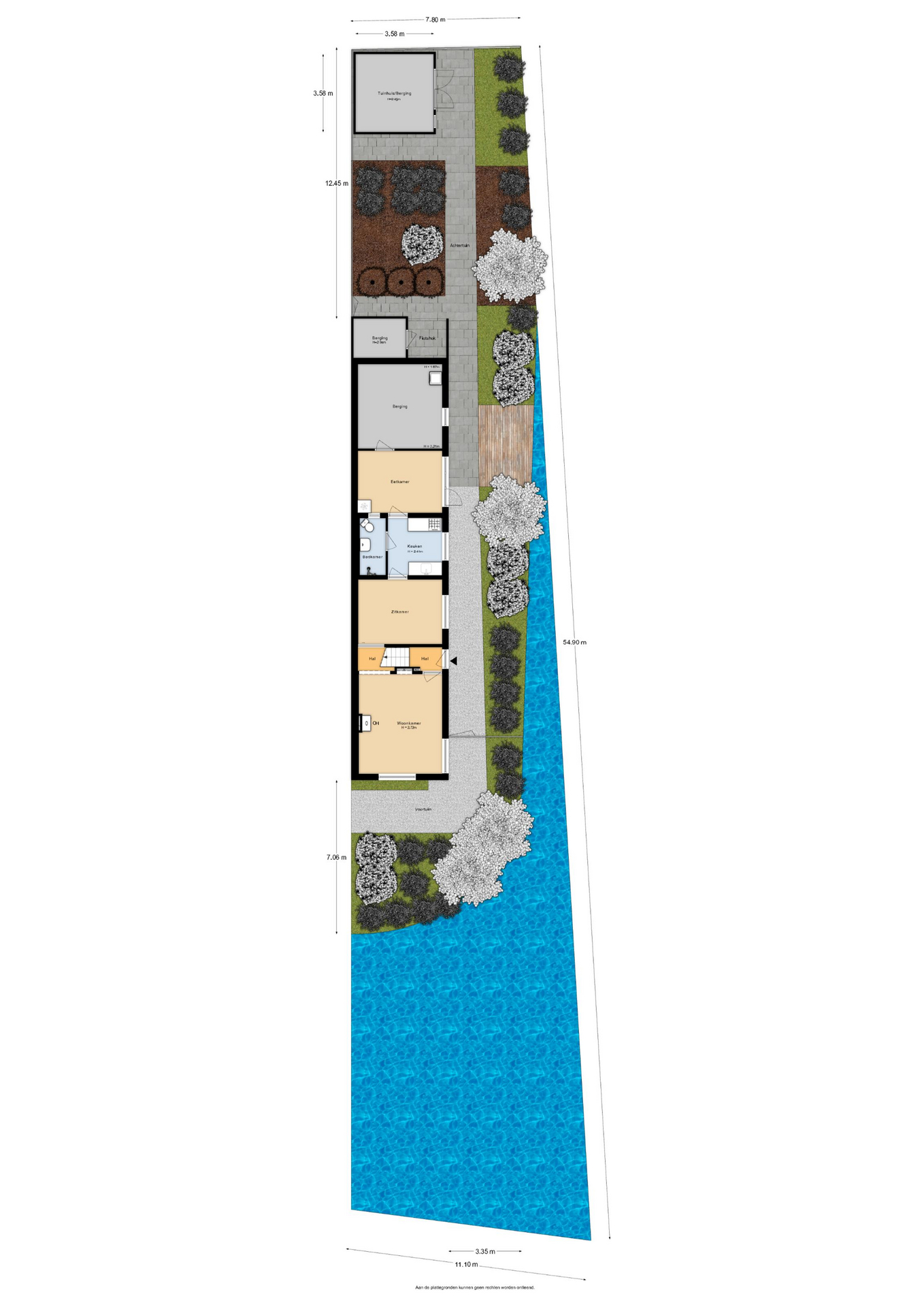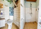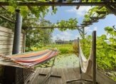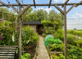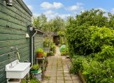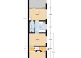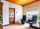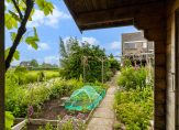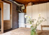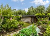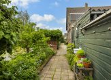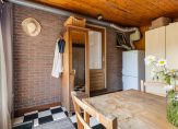 Entree via de gedeelde brug naar de entree van de woning aan de zijkant. Gang met trapopgang en toegang tot de woonkamer aan de voorzijde. Doorloop naar de zitkamer die vervolgens weer toegang geeft tot de gesloten keuken met eenvoudige inrichting. De keuken is direct verbonden met de badkamer met douchehoek, toilet en wastafel en de eetkamer aan de achterzijde van de woning. Inpandige berging/bijkeuken. Heerlijke buitenruimte met een mooie moestuin met pruimen, appels, aardbeien, blauwe bessen en druiven veel privacy en twee extra bergingen.