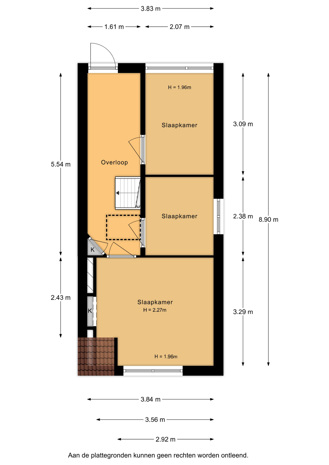 Overloop. Drie slaapkamers en vanaf de overloop toegang tot de bergzolder met diverse bergruimte.