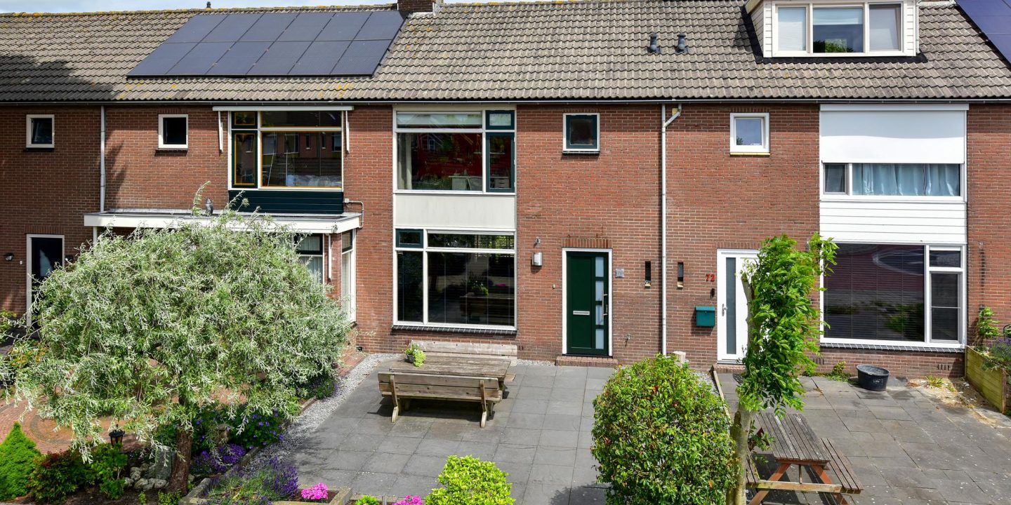 Aan de voorzijde van de woning tref je een verzorgde voortuin van prettig formaat – ideaal voor een zitje in de middagzon.