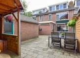 Via de loopdeur in de bijkeuken kom je in de goed onderhouden, circa 13 meter diepe achtertuin, gelegen op het oosten. De tuin is keurig bestraat, voorzien van een fraaie overkapping én een vrijstaande stenen berging met elektra en een zolder. Dankzij de achterom is je tuin ook makkelijk bereikbaar vanaf de straatzijde.