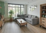 De doorzonwoonkamer is heerlijk licht dankzij de grote raampartijen aan de voor- en achterzijde.