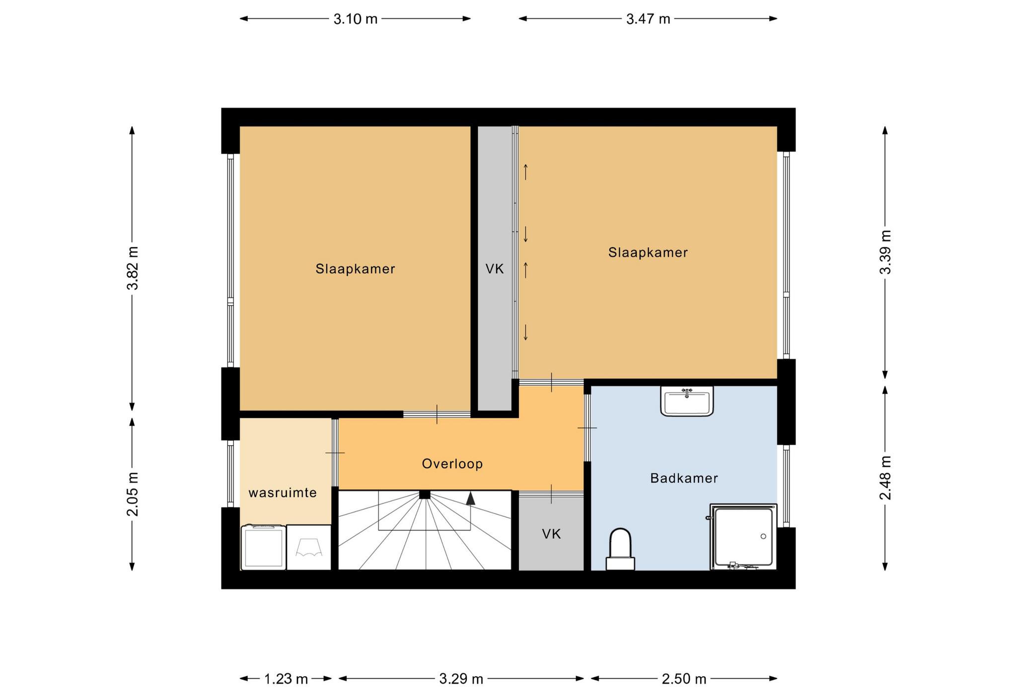 Op de eerste verdieping heb je toegang tot twee ruime slaapkamers, een wasruimte en de moderne badkamer.