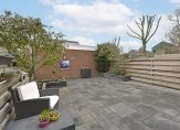 De voortuin is aangelegd met grind en een pad naar de voordeur. De achtertuin is voornamelijk aangelegd met sierbestrating en twee vaste plantenbakken. De tuin grenst aan het gezamenlijke plein voor de garages. De tuin ligt op het noorden maar doordat er rondom de woning sprake is van ruimte en laagbouw, heeft de achtertuin in de zomer de hele dag zon.