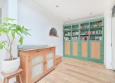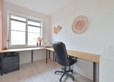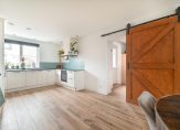 Via een grote staldeur in de woonkamer is de voormalige garage bereikbaar, die nu dienstdoet als bijkeuken en extra leefruimte. Deze ruimte is volledig geïsoleerd en beschikt over een loopdeur naar de oprit aan de voorzijde. Je kunt er ook aan denken om van deze ruimte een kantoor/praktijk aan huis te realiseren. Eventuele bezoekers hebben dan een aparte ingang waardoor ze niet door het woonhuis hoeven te gaan.