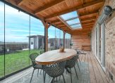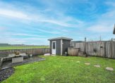 De fraai aangelegde achtertuin is ideaal gelegen op het zuiden. Direct aan de woning bevindt zich een prachtige veranda met glazen schuifdeuren, waardoor je hier het hele jaar door kunt genieten. De tuin is voorzien van een gazon en een plantenborder. Aan de achterzijde is een laag hekwerk geplaatst, zodat het weidse polderuitzicht volledig tot zijn recht komt.