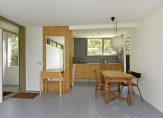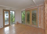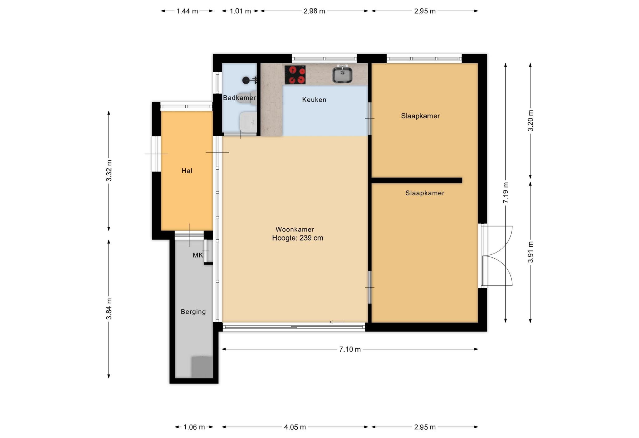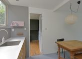 Via het voorportaal komt u binnen, met rechtdoor de toegang naar de woonkamer en rechts de garderobe en aansluitend de berging met meterkast en wasmachineaansluiting. De woonkamer is heerlijk licht door de grote schuifpui aan de tuinzijde en heeft een open keuken. De keuken is prachtig uitgevoerd in hout en voorzien van een 4-pits gaskookplaat, vaatwasser en spoelbak. Vanuit de woonkamer is er toegang tot de badkamer met douche, toilet en wastafel. De 2 slaapkamers liggen aan de achterzijde van de woning en hebben een tussendeur naar elkaar en beide raampartijen naar de tuin toe.