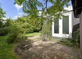 De riante tuin is omgeven door mooie bomen en struiken, waardoor veel privacy is gecreëerd en u de sfeer ervaart alsof u heerlijk afgesloten in de bossen leeft. Het betegelde terras bij de schuifpui van de woning fungeert als een verlengstuk van de woning.