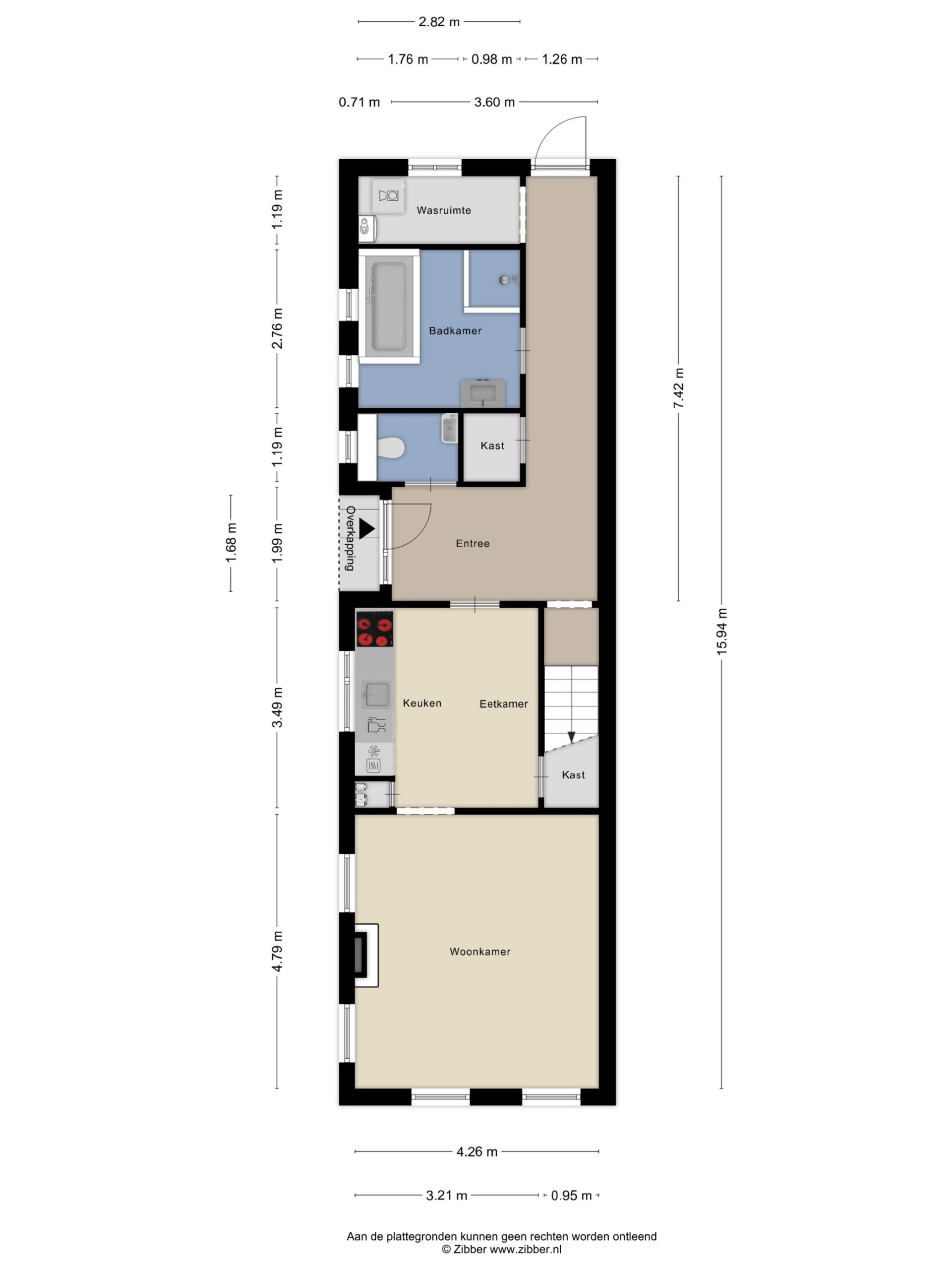 Via de royale entree/hal betreed je de woning. Vanuit hier is er toegang tot de moderne woonkeuken, voorzien van inbouwapparatuur en een praktische provisieruimte. De sfeervolle woonkamer met vrij uitzicht over de straat beschikt over hoge raampartijen; hierdoor is er veel lichtinval. De woonkamer en keuken zijn samen ca. 30 m² groot. Verder vind je op de begane grond een net toiletruimte, vaste kast voor extra bergruimte, en een ruime nette badkamer uitgerust met een douche, ligbad en vaste wastafelmeubel. Naast de badkamer is de bijkeuken met witgoedaansluitingen en cv-installatie. Via de achter-entree kom je in de de verzorgde en besloten tuin.