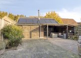 De achtertuin is besloten en onderhoudsarm aangelegd. Achter in de tuin staat een royale houten garage/schuur van ca. 43 m², ideaal als opslag en/of klusruimte. Onder de overkapping is het een fijne plek waar je lang beschut buiten kunt zitten. De oprit is lang, er kunnen met gemak meerdere auto’s staan.