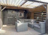 – Royale houten garage/schuur van 43 m² met overkapping;