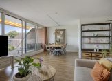 De grote glazen achterpui zorgt voor veel licht in de woonkamer en geeft toegang tot het royale terras waar je heerlijk ’s-middags en ’s-avonds van de zon kunt genieten! Het terras biedt fraai uitzicht op groen en prachtige zonsondergangen. Voor de hete dagen is er een zonnescherm en er is een berging om eenvoudig spullen in op te bergen.