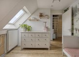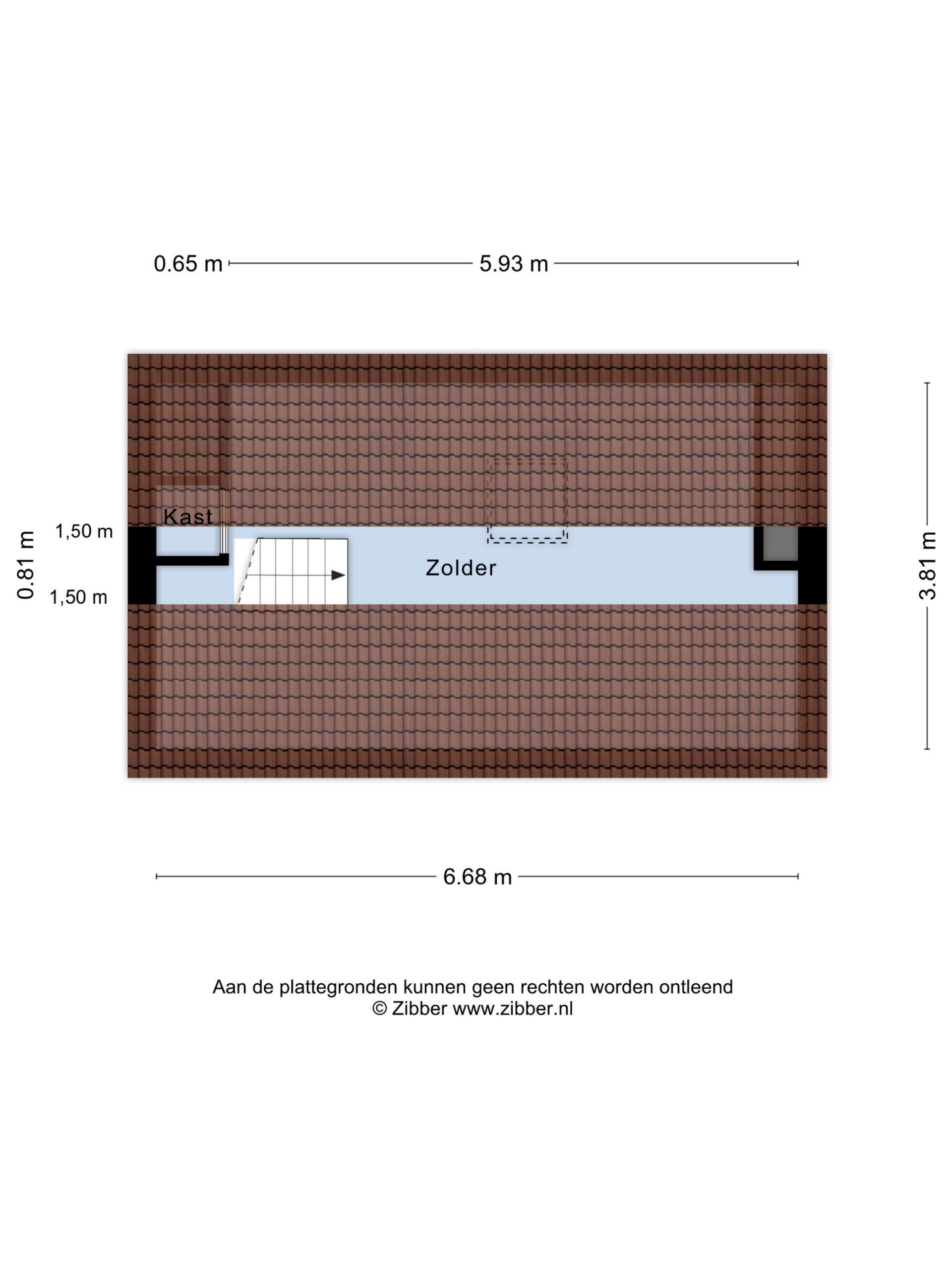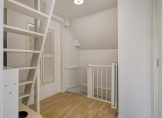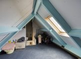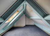 Een vaste trap op de overloop brengt je naar de zolder. Deze ruimte met dakraam en een nokhoogte van ca. 1.84 is een ideale ruimte voor het opslaan van spullen die je niet elke dag nodig hebt, maar is ook een leuke ruimte als speelkamer voor de kinderen.