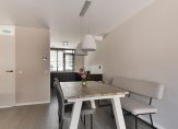 Via het eetgedeelte loopt u door naar de keuken, die aan de voorzijde van de woning ligt. De keuken is in 2022 volledig vernieuwd en staat er fraai bij! Met een licht composiet werkblad en nette zwarthoutnerf fronten heeft de keuken een moderne uitstraling. Uiteraard is de keuken van alle gemakken voorzien, met hoogwaardige inbouwapparatuur van SIEMENS Studioline;