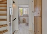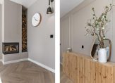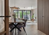 De tuingerichte woonkamer is in 2023 uitgebouwd en compleet vernieuwd! Zo is er comfortabele vloerverwarming aangebracht met daarboven een schitterende visgraat parketvloer, is de toegang naar de hal bekleed met fraaie houten latten en zijn de overige wanden voorzien van stucwerk. In de koude wintermaanden kun je heerlijk gebruik maken van de sfeervolle openhaard die strak is afgewerkt. Door de 3 meter diepe uitbouw is de woonkamer zeer royaal te noemen en daardoor ideaal voor gezinnen. Door de grote glazen achterpui komt het buitengevoel echt naar binnen, zodat je ook binnen kunt genieten van de prachtige omgeving en de verschillende soorten vogels die voorbij komen vliegen. De dakkoepels en de grote achterpui met tripleglas zorgen voor veel lichtinval. In de tweede hal is er een trap naar de verdieping en een ruim en modern toilet met grijze hexagontegels, wandcloset en fontein.