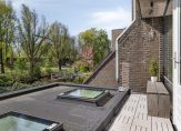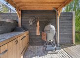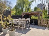 Via de dubbele schuifpui is er toegang tot de ca. 14 meter diepe tuin op het Zuidwesten! Er is een heerlijk terras om te zitten en een stuk gras voor de kinderen om te spelen. Het achterste gedeelte van de tuin ligt wat lager. Hier hebben de eigenaren een overkapping met een buitenkeuken geplaatst, zodat je altijd droog kan barbecueën! Aan het eind van de tuin ligt een houten steiger voor nog meer tuinplezier en beleving van het water.