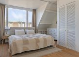 Via de vaste trap kom je op de overloop die toegang biedt tot alle vertrekken. Zowel aan de voor- als achterzijde is er een woningbrede slaapkamer. Hierdoor zijn de slaapkamers heel royaal. De slaapkamers zijn voorzien van gladde wandafwerking en een whitewash houten vloer. De slaapkamer aan de voorzijde beschikt over kunststof kozijnen met triple glas. De moderne badkamer is in 2020 vergroot en vernieuwd. De wanden van de badkamer zijn voorzien van stucwerk en grijze tegels en op de vloer ligt een warme houtlook tegelvloer en er is vloerverwarming in de badkamer. De badkamer is voorzien van een wandcloset, een groot wastafelmeubel met fraai boomstamblad en grote lades en een ruime inloopdouche met bankje, regendouche en een handdouche.
