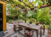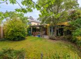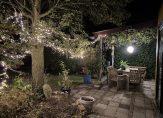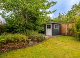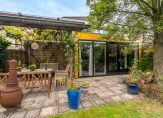 Op één van de mooiste plekjes in de wijk, met zicht op water zonder directe overburen, helft van een dubbel woonhuis in kindvriendelijke buurt. De woning is aan de achterzijde uitgebouwd, zodat er een royale woonkeuken met kookeiland is ontstaan, waar het heerlijk borrelen en eten is met familie en vrienden. Vanuit de woonkeuken loop je zo de tuin in waar een overdekt terras (met druiven) aan de achterzijde van de woning een soort verlengstuk van het huis is geworden. Het betreft een groene zonnige tuin op het zuiden met veel privacy waar ook vogels, vlinders en bijtjes zich thuis voelen. Achter in de tuin is een solide tuinhuisje wat voor diverse doeleinden gebruikt kan worden. De aangebouwde garage is geïsoleerd, verwarmd en voorzien van een werkbank en daarmee een ideale ruimte voor klussers. De auto kan in de garage maar staat ook goed beschut en droog onder de carport. Op eigen terrein is ruimte voor 3 auto’s.