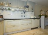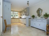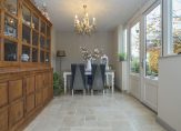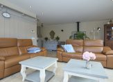 De woonkamer, ingericht in sfeervolle landelijke stijl à la Riviera Maison, straalt warmte en comfort uit. De houtkachel, geplaatst op een stijlvolle stenen verhoging, maakt het plaatje compleet. Dé plek om op koude dagen te ontspannen met een goed boek of een glas wijn. Zowel de woonkamer als de eetkamer beschikken over openslaande deuren naar de tuin, waardoor licht en buitenleven naadloos naar binnen worden gebracht. Bovendien beschikt de woning over een kelder die niet alleen praktisch is voor extra opslag, maar zich ook uitstekend leent als wijnkelder. Een prachtige plek om een bijzondere collectie te bewaren.