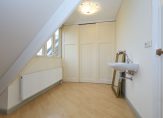 Op de eerste verdieping bevinden zich twee comfortabele slaapkamers. De slaapkamer aan de achterzijde is een echte retreat met een inloopkast en een en-suite badkamer, voorzien van een luxe douchecabine, toilet en wastafel. De tweede slaapkamer heeft een vaste kast, een dakkapel voor extra ruimte en licht en een eigen wastafel.