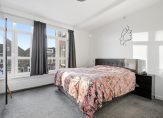 Dit appartement heeft twee ruime slaapkamers, met lichtinval vanaf de oostkant. In beide kamers ligt tapijt op de vloer en de inbouwkasten bieden praktische bergruimte. De badkamer, te bereiken vanuit de hal, is ingedeeld met een inloopdouche, een wastafel, spiegelkast en een wandcloset en is voorzien van vloerverwarming.