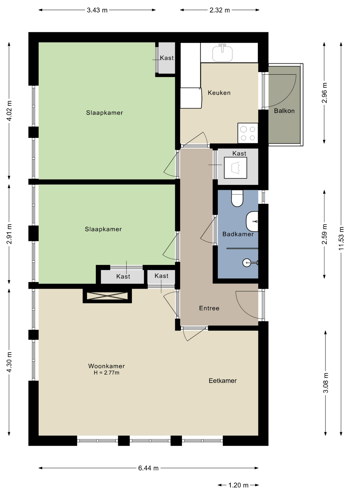 Dit appartement heeft een ruime hal, van waaruit nagenoeg alle ruimtes te bereiken zijn. Lichte kleuren bepalen de sfeer, er ligt tapijt op de vloer en de paneeldeuren zijn behouden. Aan de voorzijde is de woon-/eetkamer, met lichtinval vanaf twee kanten en prachtig uitzicht richting De Berkel en de watertoren.