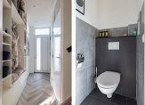 Welkom in de mooie hal van deze lichte, instapklare woning! Naast de meterkast is een mooie kastenwand gemaakt, met een zitje en ruimte voor een kapstok. De toiletruimte met stijlvol tegelwerk en een wandcloset is vlak naast de trap en de inbouwkast biedt ruimte aan de HR-ketel. Bij de trap naar de wijn-/provisiekelder is de vernieuwde groepenkast (elektra).