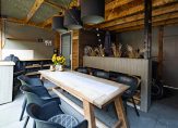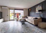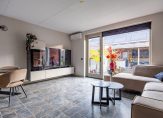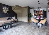 In de woonkamer en keuken ligt dezelfde tegelvloer als in de hal, met aangename vloerverwarming. Bij het zitgedeelte hangt een airco-unit, die kan koelen en verwarmen. Het zitgedeelte is lekker ruim, er is genoeg plek voor een eettafel en de ruimte bij de trap kan als speelplek worden gebruikt.
