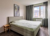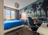 Wat opvalt is de grootte van de slaapkamers, drie in totaal. Er zijn twee slaapkamers aan de achterzijde, die nu als kinderkamer en master bedroom in gebruik zijn. De derde slaapkamer, met opvallend fotobehang, bevindt zich aan de voorzijde. In alle kamers ligt laminaat op de vloer, zonder drempels bij de deuren.