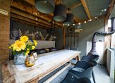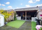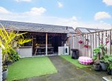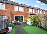 In de voortuin, op het westen, zie je een lage haag en bestrating. Dit is een fijne plek om in de middag- en avondzon te zitten. De achtertuin, op het oosten, is ingedeeld met kunstgras en grote betontegels. Blikvanger is de houten veranda, met ruimte om een grote bbq en een grote (eet)tafel neer te zetten. In de berging en bij het achterste deel van de veranda kunnen de fietsen staan.