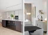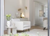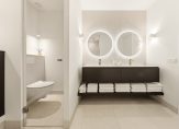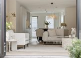 Ook de eerste verdieping is het toonbeeld van luxe en stijl, mede dankzij het rustige kleurgebruik. Er ligt, net als beneden, een visgraatvloer met vloerverwarming en -koeling waardoor er geen hinder is van radiatoren.