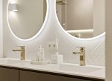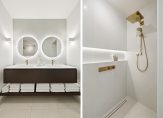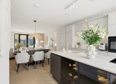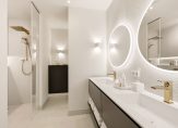 Aan de voorzijde is de master bedroom, over de hele breedte van het huis. De royale slaapkamers aan de achterzijde, in dezelfde stijl, zijn ingericht als kleedruimte en werkkamer. In de royale badkamer ervaar je luxe en comfort van 5-sterren niveau. Prachtig tegelwerk is gecombineerd met strak stucwerk, goudkleurige kranen en luxe sanitair. Je hebt de beschikking over een xl-inloopdouche, een nis met toilet en een dubbel wastafelmeubel.
