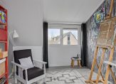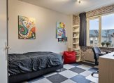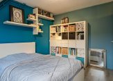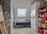 De derde slaapkamer is een heerlijk ruime en lichte kamer, die nu als logeerkamer en hobbyruimte in gebruik is. Er ligt hier laminaat op de vloer.