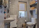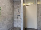 Niet alleen de slaapkamers zijn vanaf de overloop te bereiken. Dit geldt ook voor de handige berging en de in oktober 2023 vernieuwde badkamer. Deze ruimte is ingedeeld met een inloopdouche, toilet, wastafel en grijze wand-/vloertegels van groot formaat. Boven de wastafel hangt een spiegelkast en boven het toilet hangen twee rekken voor handdoeken en manden, terwijl de spiegelkast ook bergruimte biedt. Op deze verdieping is ook een handige inloop/bergingskast aanwezig.