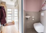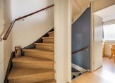 De ligging aan het einde van een van de zijstraatjes, met parkeergelegenheid voor de deur, is een pluspunt. Via de donkerblauwe voordeur met glas is de hal te bereiken waar, net als in de woonkamer, een eikenhouten vloer ligt. Links in de hal zijn de meterkast, trapopgang en de vernieuwde toiletruimte met fonteintje.