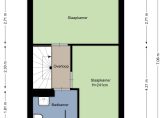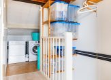 Een vaste trap geeft toegang tot de tweede verdieping. Als eerste is er de overloop, die veel bergruimte biedt en waar de wasapparatuur een plekje heeft.