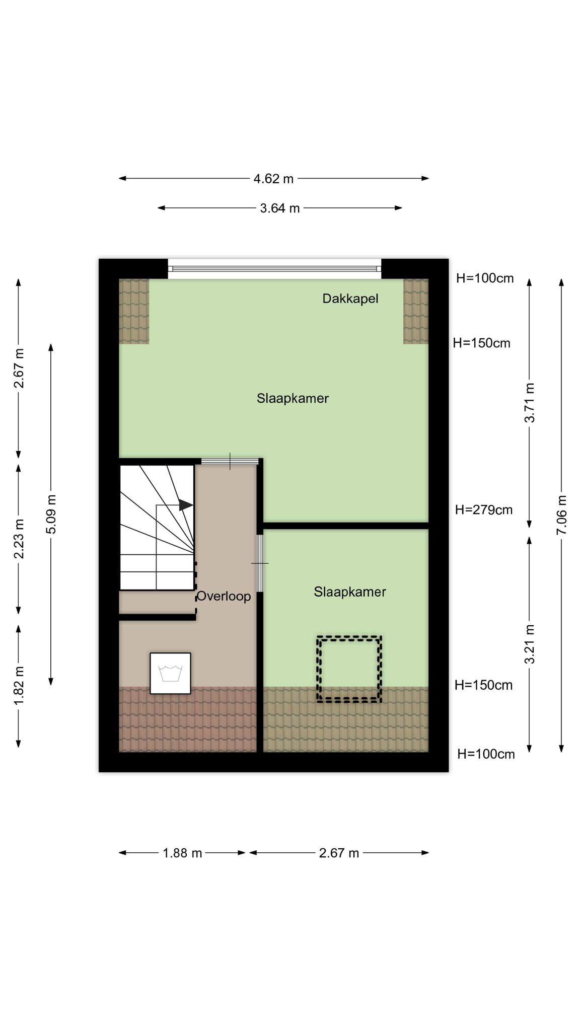 Verder zijn er twee ruime slaapkamers op deze verdieping, waarvan een met een dakkapel. Deze slaapkamer, die zich aan de achterzijde bevindt, kan worden gesplitst om een extra (kinder)kamer te realiseren.
