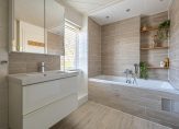 In 2016 is de badkamer geheel vernieuwd. Mooie wand- en vloertegels zijn gecombineerd met modern, wit sanitair en dankzij het raam is de badkamer heel licht. De ruimte is ingedeeld met een whirlpoolbad, aparte douche, hoge kast, wastafelmeubel en een toilet.
