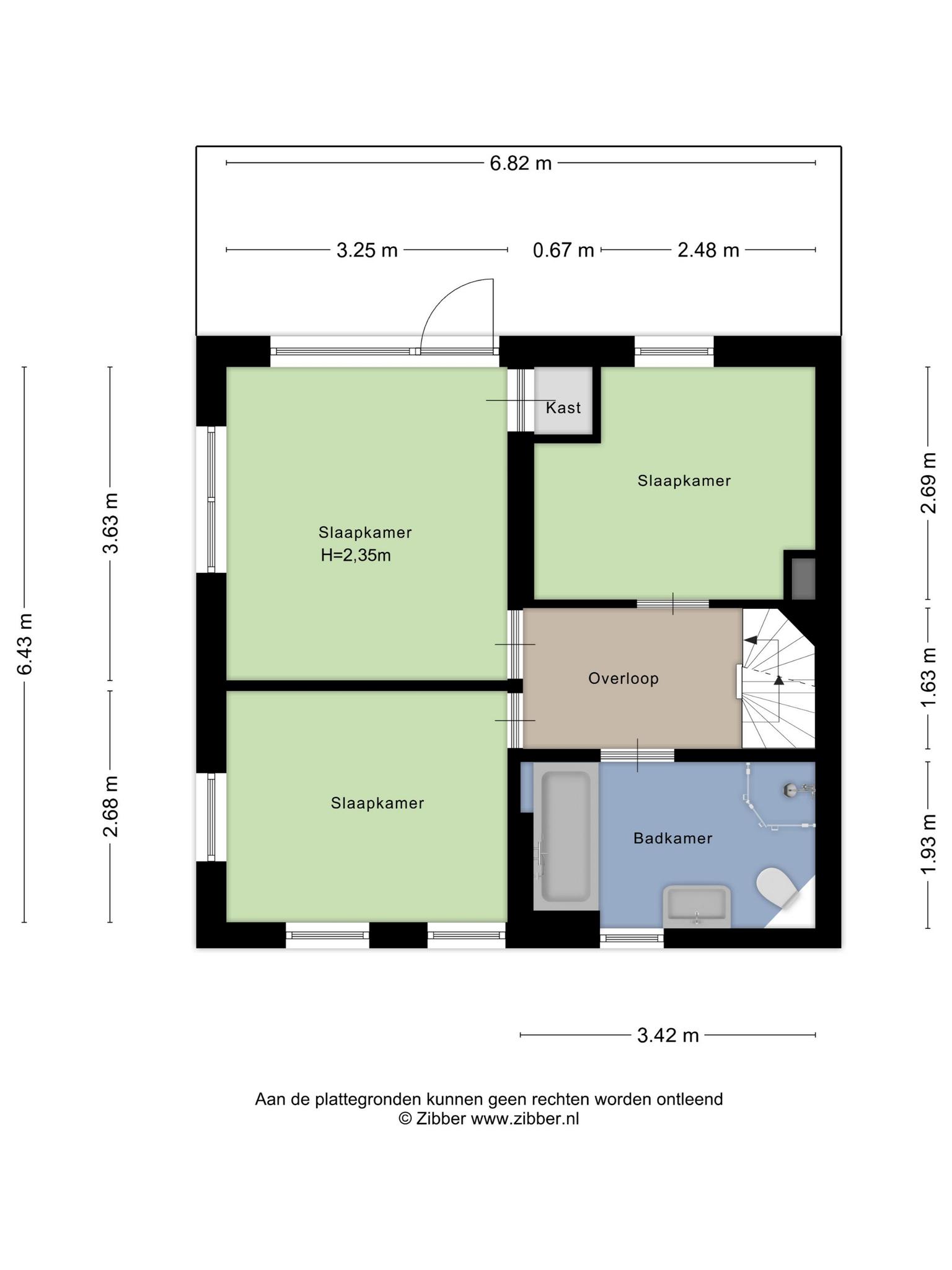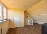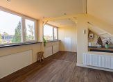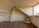 Een grote, brede dakkapel zorgt voor veel extra ruimte op de tweede verdieping. Hier is een grote slaapkamer, met berging in de schuinten van het dak en een plafondhoogte van circa 2.05 meter. Welke invulling geef je aan deze ruimte? Een kinderkamer, werkkamer of misschien als master bedroom?