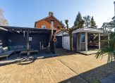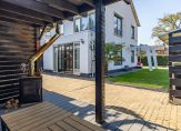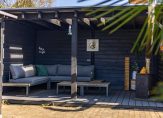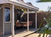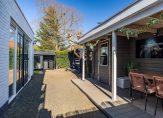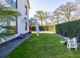Niet alleen de binnenzijde, maar ook aan de buitenzijde is dit een huis met ruimte en sfeer. Een hoge, groenblijvende haag zorgt voor privacy en er zijn meerdere plekken om in de zon te zitten.
