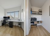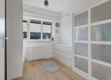Vanaf de overloop is er toegang tot maar liefst vier slaapkamers, twee aan de voorzijde en twee aan de achterzijde. Een van de kamers is de master bedroom, met een airco-unit (voor koelen en warmen) en mooi uitzicht op een plantsoen. Beide slaapkamers aan de tuinzijde (op het zuiden) zijn voorzien van een airco-unit voor koelen en warmen en van rolluiken (2023). Voor een gezin zijn er genoeg slaapkamers, de thuiswerker vindt al snel een fijne plek en ook een kleedruimte is goed mogelijk. In alle slaapkamers ligt laminaat op de vloer, waardoor je al snel kunt beginnen met inrichten.