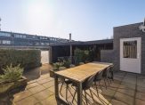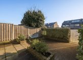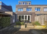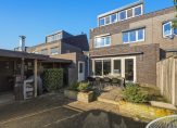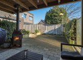 Openslaande deuren in de woonkamer geven toegang tot de fraaie achtertuin, met een groot terras met zonnescherm (2023) en een overdekt terras. Hier geniet je volop van het buitenleven, zonder al te veel onderhoud. Dankzij de ligging op het zuiden is er volop zon en via het poortje is een rustige straat te bereiken, met een speeltuintje voor de kinderen.