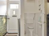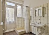Ook de badkamer staat bol van het karakter. De douchebak, het zeepbakje tussen de wandtegels en de wastafel met twee kranen zijn geweldig voor de liefhebber, maar vervanging voor een nieuwe badkamer is uiteraard ook mogelijk.
