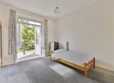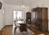 Ook op de eerste verdieping zijn de paneeldeuren behouden en ligt, onder het tapijt, de originele houten vloer. Aan de overloop grenzen drie slaapkamers, waarvan twee met een en suite verdeling. Kies je voor de slaapkamer met uitzicht naar het plein of voor de kamer met openslaande deuren naar het balkon?