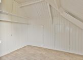 Verrassend is de indeling op de tweede verdieping, met twee slaapkamers en een grote zolder die alle drie grenzen aan de overloop. Deze verdieping is perfect voor een groot gezin, om vanuit huis te werken en voor een nieuwe indeling met een tweede badkamer. In de schuinten van het dak kun je, net als op de vliering, veel spullen opbergen.