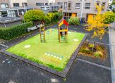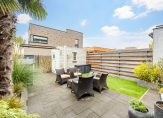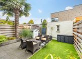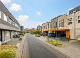 De voortuin is geheel bestraat, dus daar hoef je alleen af en toe te vegen. Ook voor de achtertuin, op het zonnige zuiden, heb je geen groene vingers nodig. Hier zie je bestrating, kunstgras, bamboe, siergrassen en een prachtige palmboom. In de berging is ruimte voor de (kinder)fietsen en er is een doorgang naar de steeg.