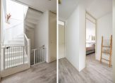 Niet alleen op de begane grond, maar ook op de eerste verdieping zijn rustige kleuren gebruikt. De lichte laminaatvloer ligt op bijna de hele verdieping en alle ruimtes, inclusief de overloop, zijn heerlijk licht.